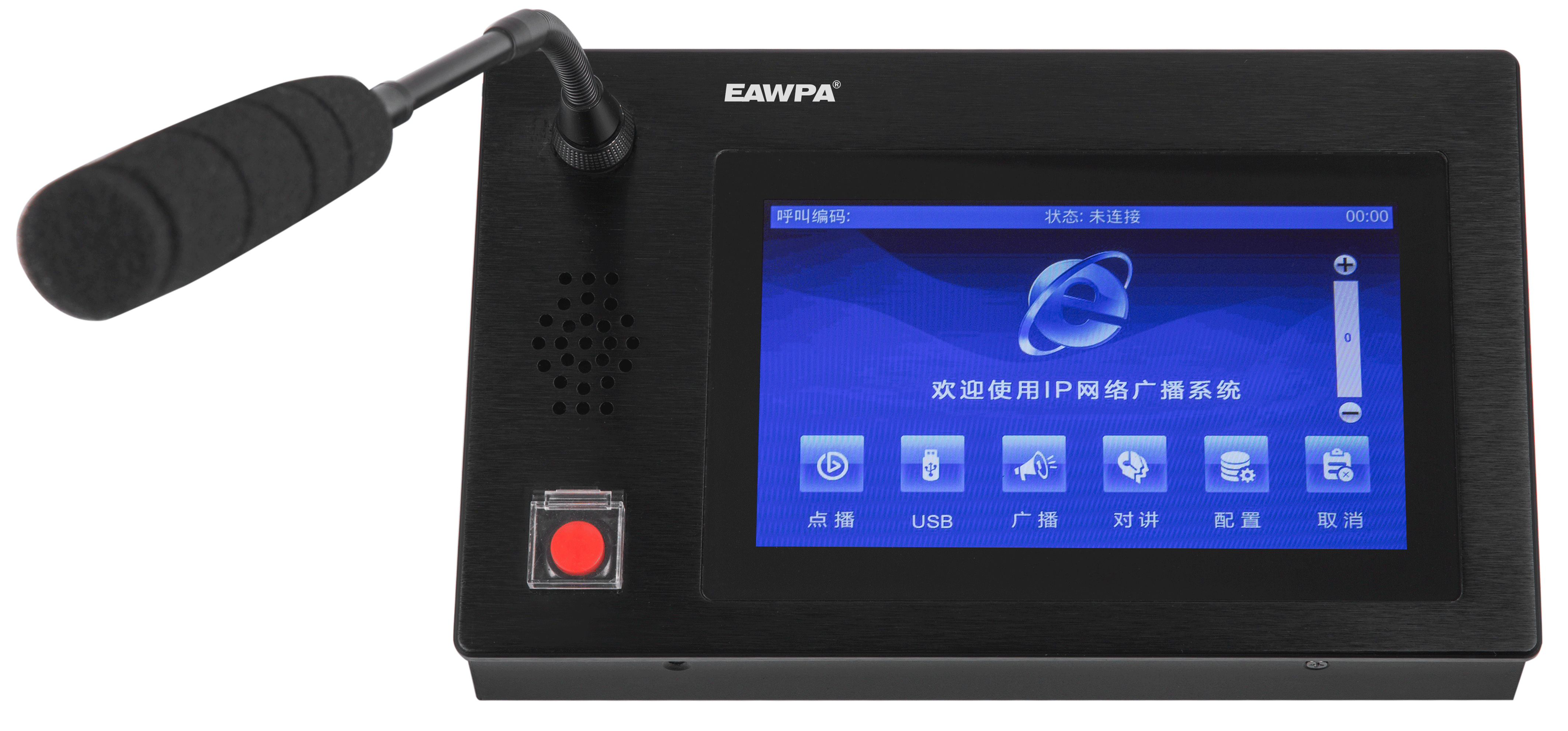 7.带有一个紧急预警按钮,当有紧急突发事件时,按下此按钮就及时启动广播预警。
